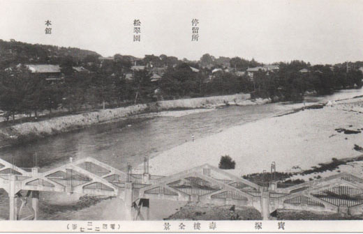 明治40年8月15日大阪經濟社発行「大阪經濟雑誌(第15年第8号)」(後の日刊紙「大阪朝報」)には、「寶塚紀遊」というタイトルで、大阪經濟社大槻天海編集長、大島實太郎弁護士親子、岡部亞洲の4名が旅館壽樓(寿楼)に宿泊し、千歳橋、丁字瀧、隧道等周辺を散策した紀行文が掲載されています。